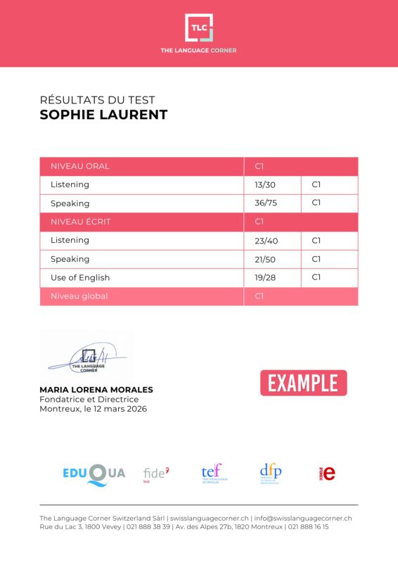 À The Language Corner, spécialiste des langues étrangères à Vevey et Montreux, nous évaluons votre niveau et vous délivrons une attestation confirmant vos compétences actuelles en anglais, français, allemand, espagnol ou italien.